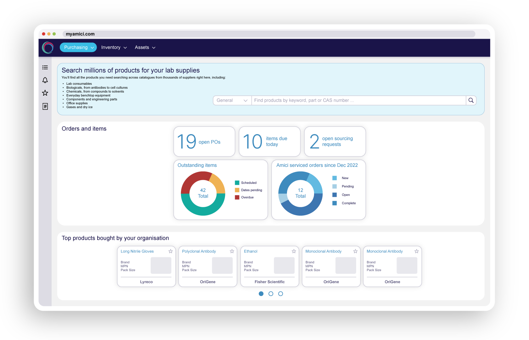 Unlike generic procurement tools, MyAmici is purpose-built for biotech. It connects purchasing, inventory, equipment, and compliance in one intelligent platform—supported by a 65-strong team of scientists-turned-procurement specialists. You don’t just get software; you get a service that understands your science and scales with your lab.