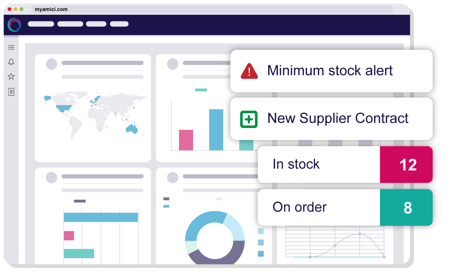 Bring order to complexity. MyAmici unites your procurement, inventory, and equipment maintenance into a single management solution – giving you real-time visibility, process control and time efficiency. Fast and fully supported implementation allows you to get up and running in no time, so you can focus on your core business.